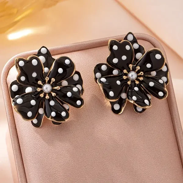 Polkadot oorknoppen in bloemvorm zwart/wit