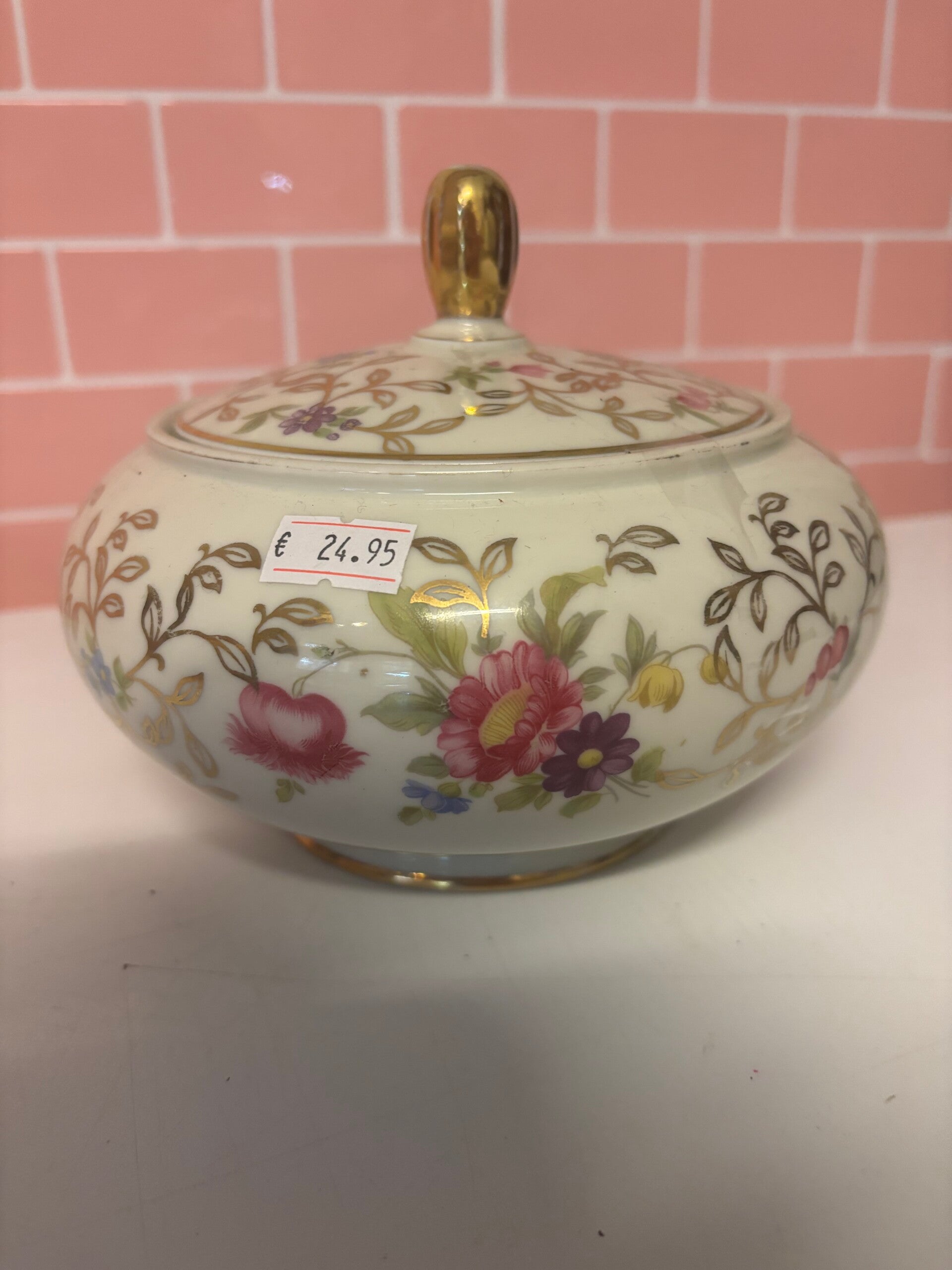 Zeer mooie sierlijke pot leuk voor op tafel met bloemen en gouden accenten.