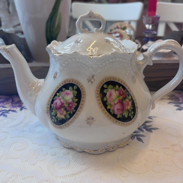 Vintage theepot met romantische roosjesdetails — perfect voor een gezellige high tea, een mooi hoekje in huis óf gewoon om verliefd op te worden 💕