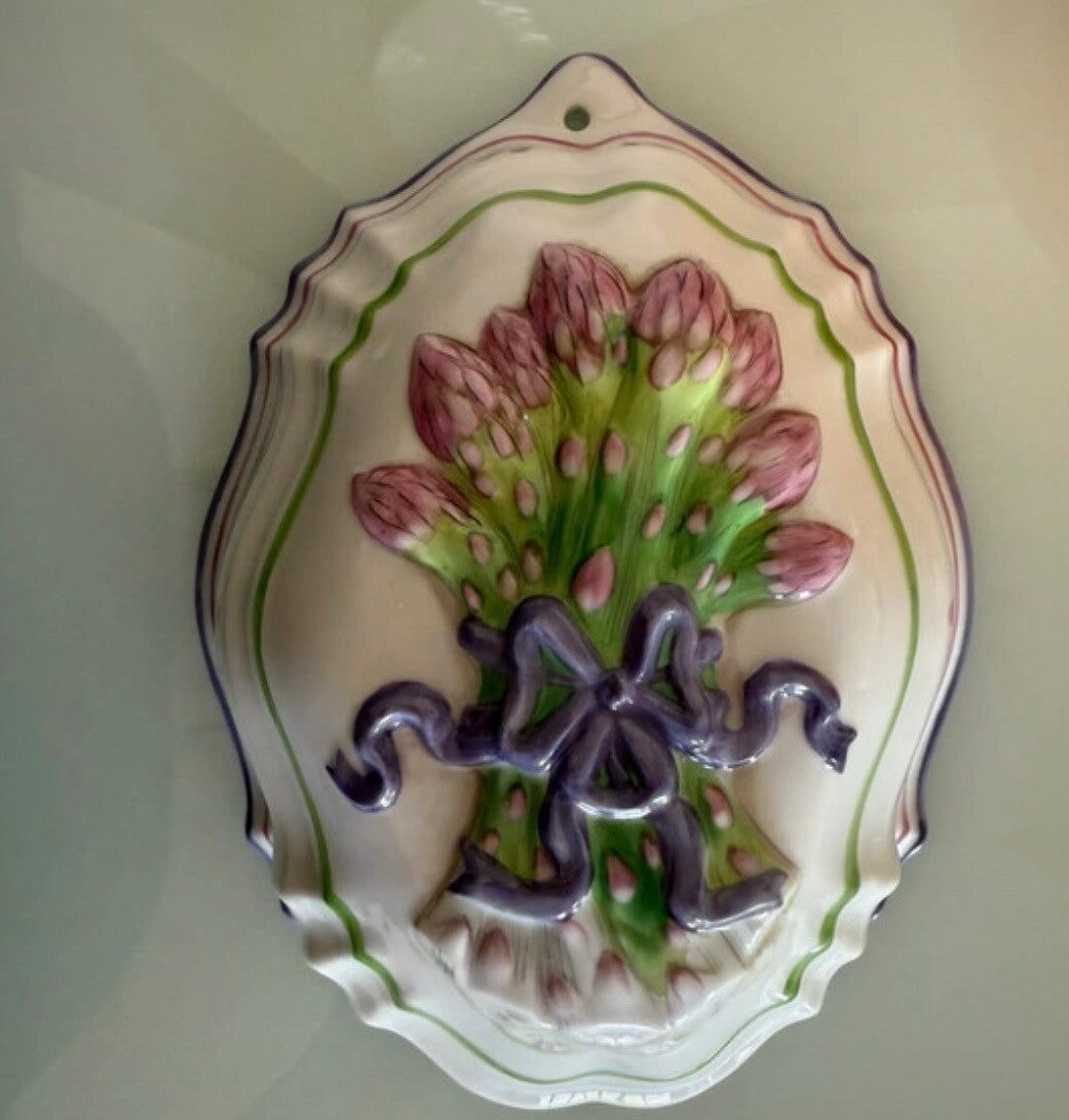 Een echte blikvanger voor de keuken! Deze prachtige vintage puddingvorm met asperges van Franklin Mint – Le Cordon Bleu is uitgevoerd in hoog reliëf en straalt pure landelijke charme uit.