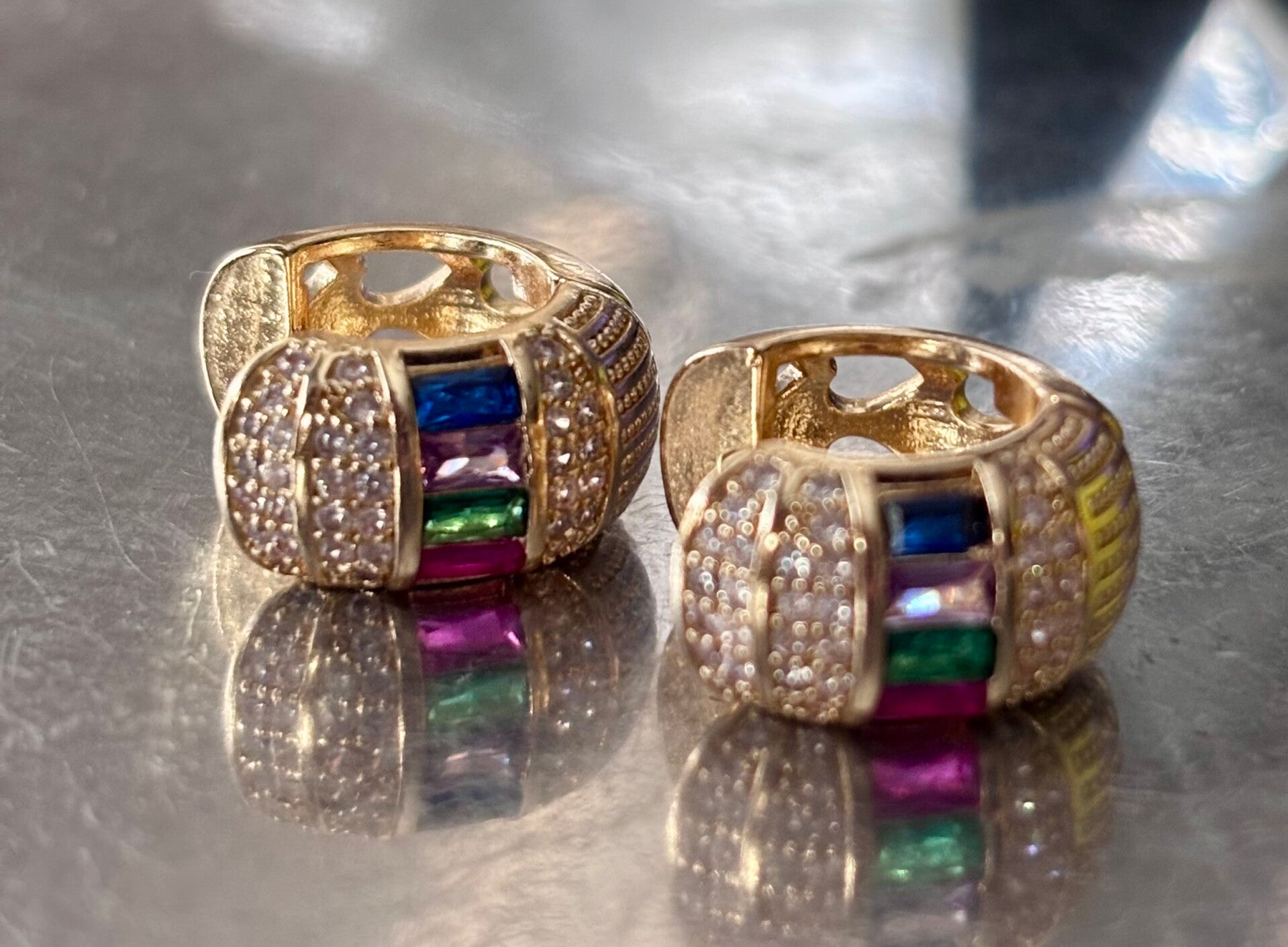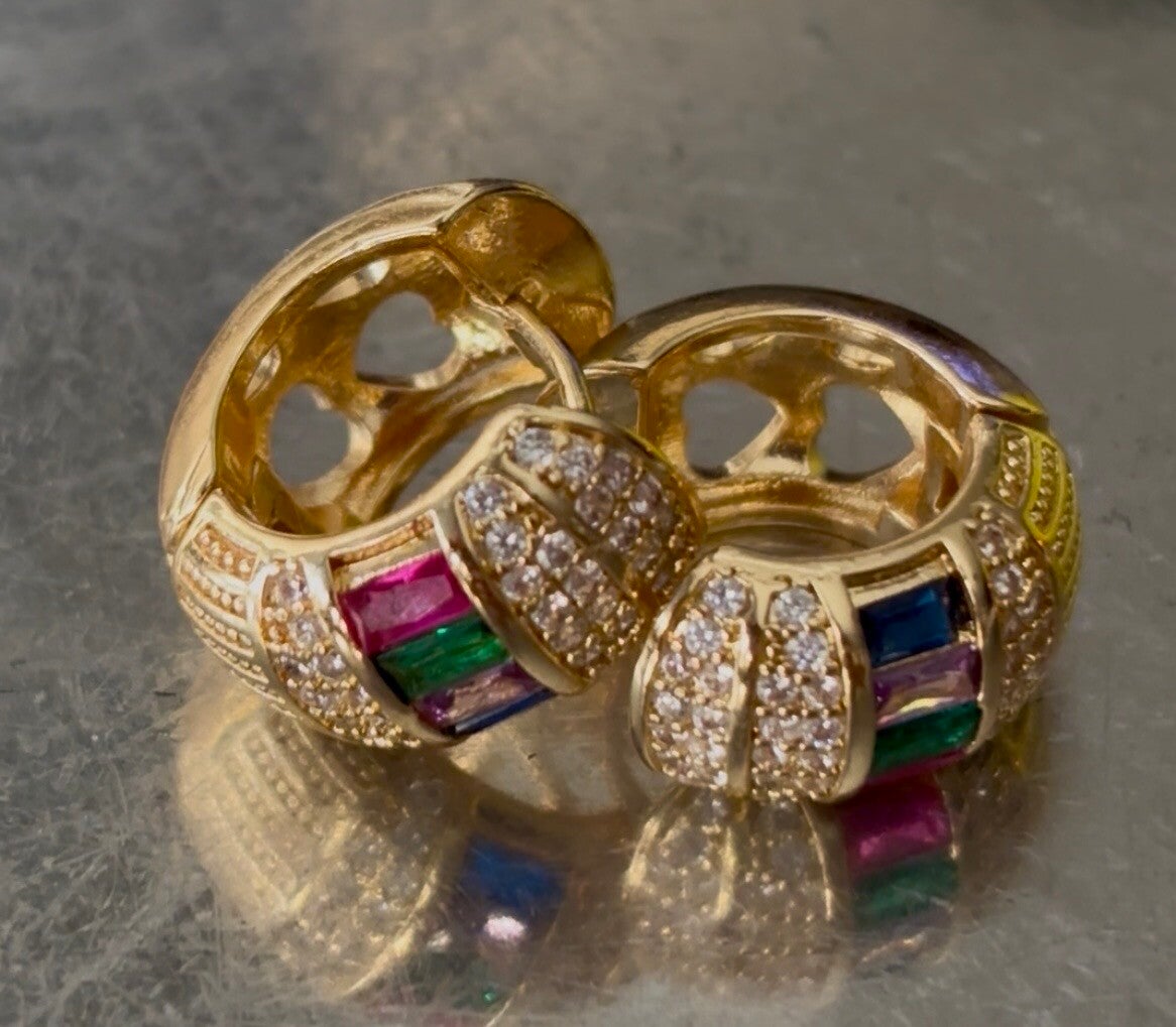 Vintage oorcreolen met 4 kleuren stenen
